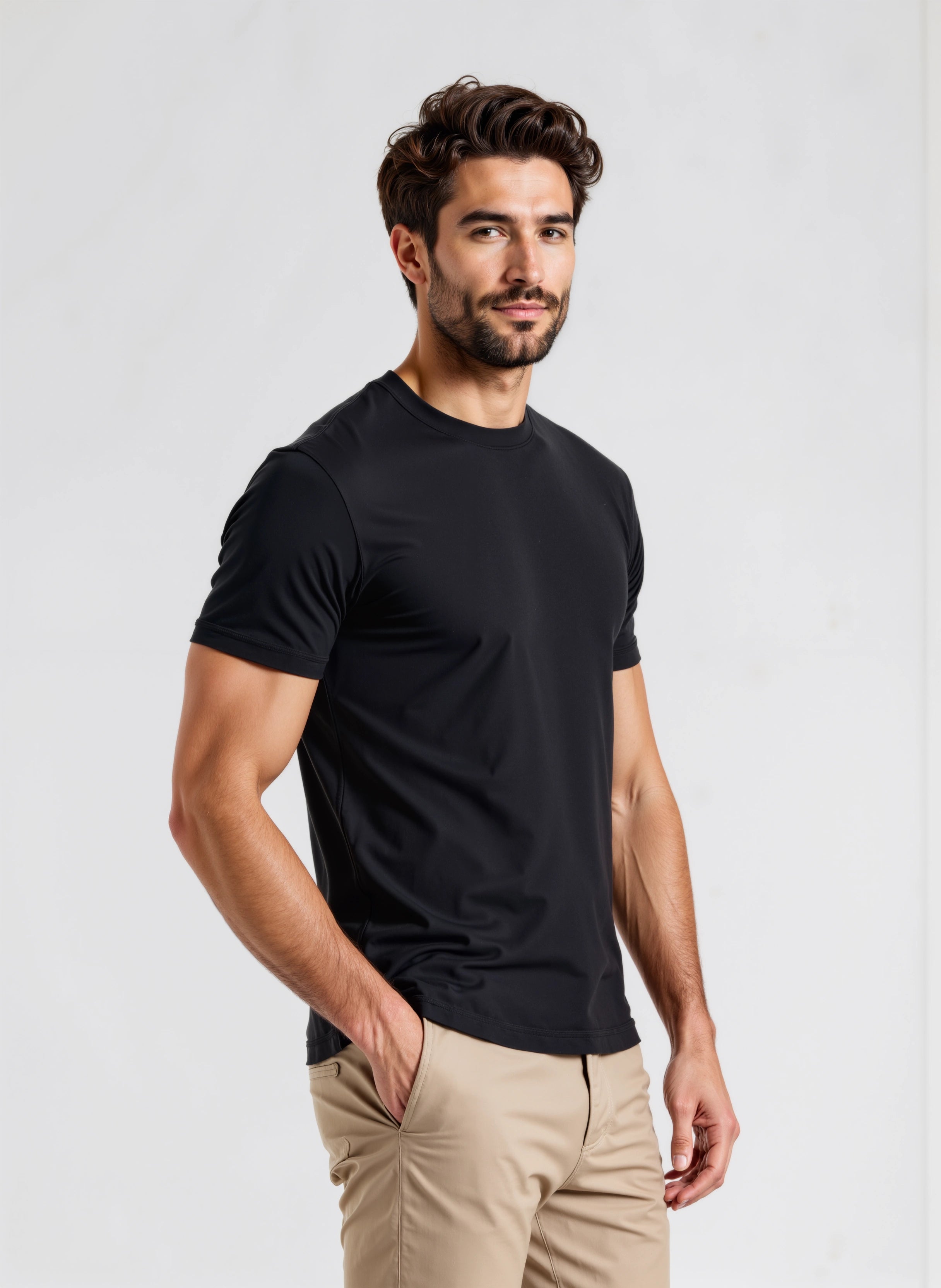 La collezione Premium, invece, rappresenta l’eccellenza del brand: ogni capo è prodotto con cotone extra pettinato da 180 gsm, più corposo, morbido e resistente. Le finiture sono curate nei minimi dettagli per esaltare la fisicità con eleganza. Ideale per occasioni più formali o da indossare sotto una giacca.
