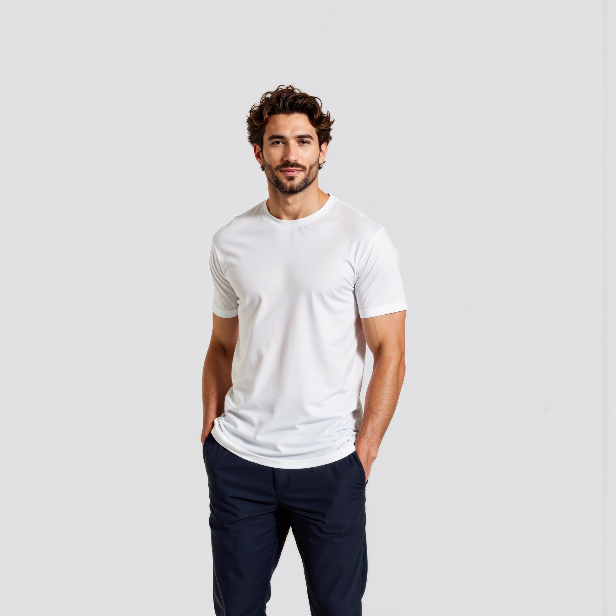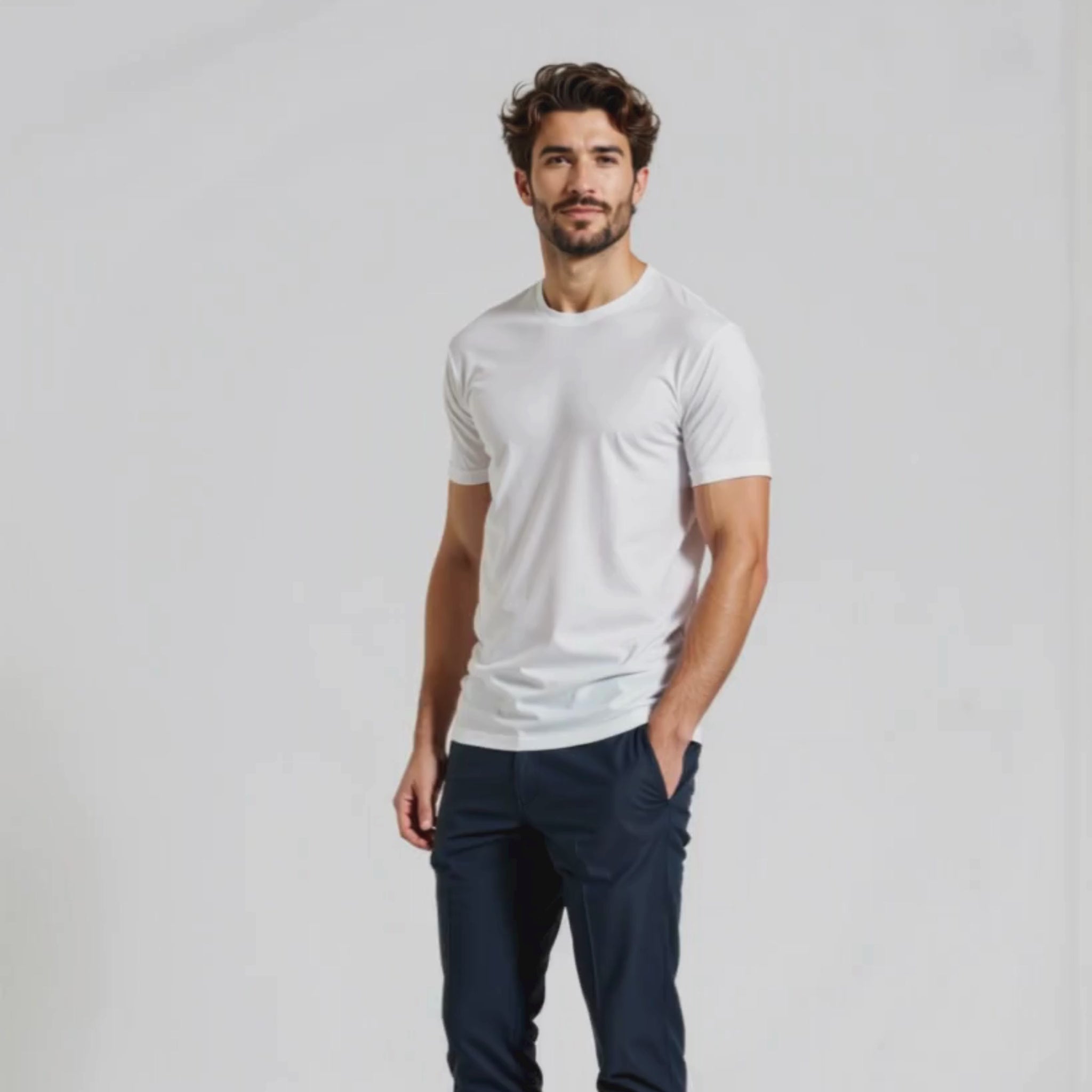 La collezione Premium, invece, rappresenta l’eccellenza del brand: ogni capo è prodotto con cotone extra pettinato da 180 gsm, più corposo, morbido e resistente. Le finiture sono curate nei minimi dettagli per esaltare la fisicità con eleganza. Ideale per occasioni più formali o da indossare sotto una giacca.