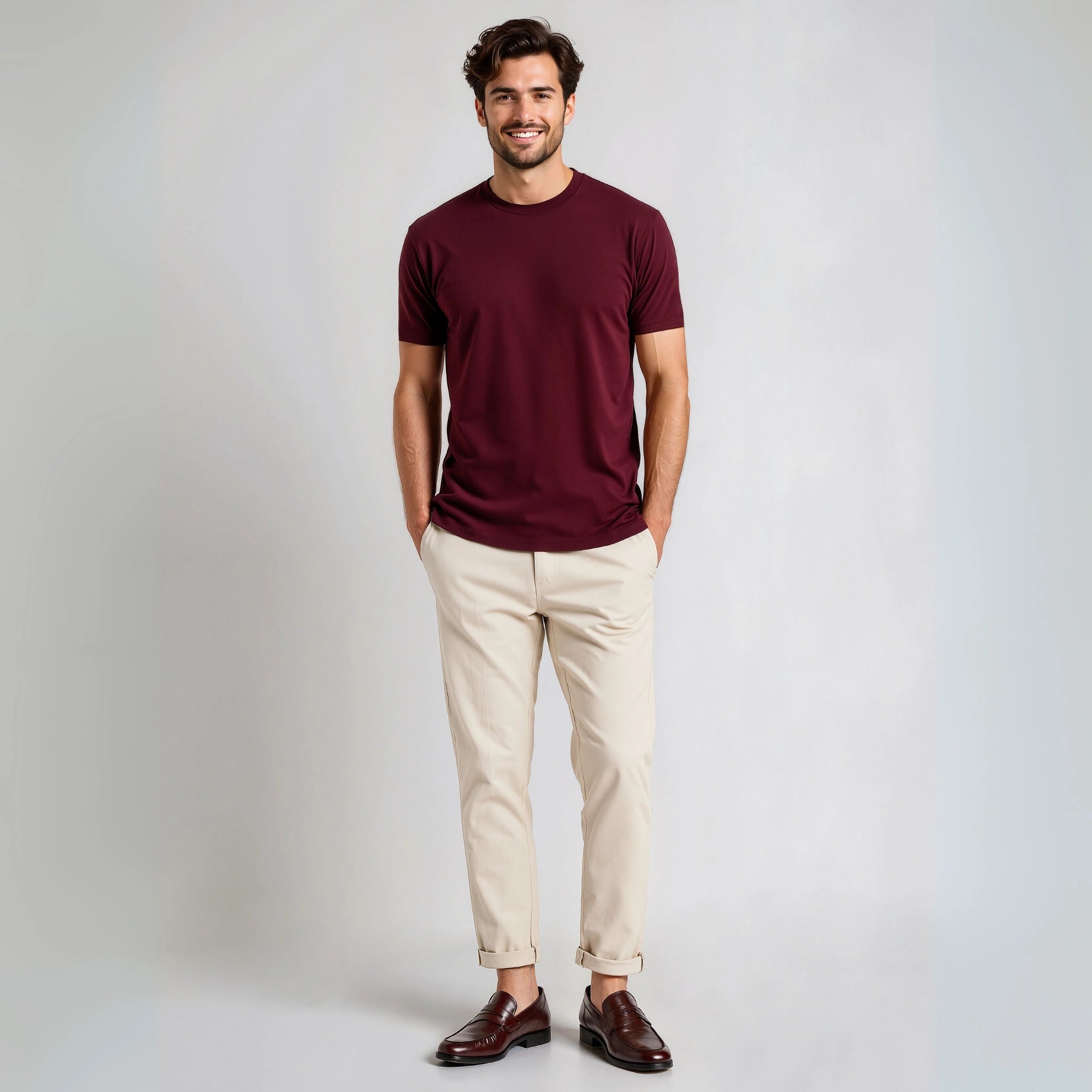 Elevate your style with the Siena Muscle Fit T-shirt , a perfect balance of elegance and Italian craftsmanship. Made entirely in Italy, this sophisticated Bordeaux T-shirt is designed to flatter your figure with its slim, contoured fit.