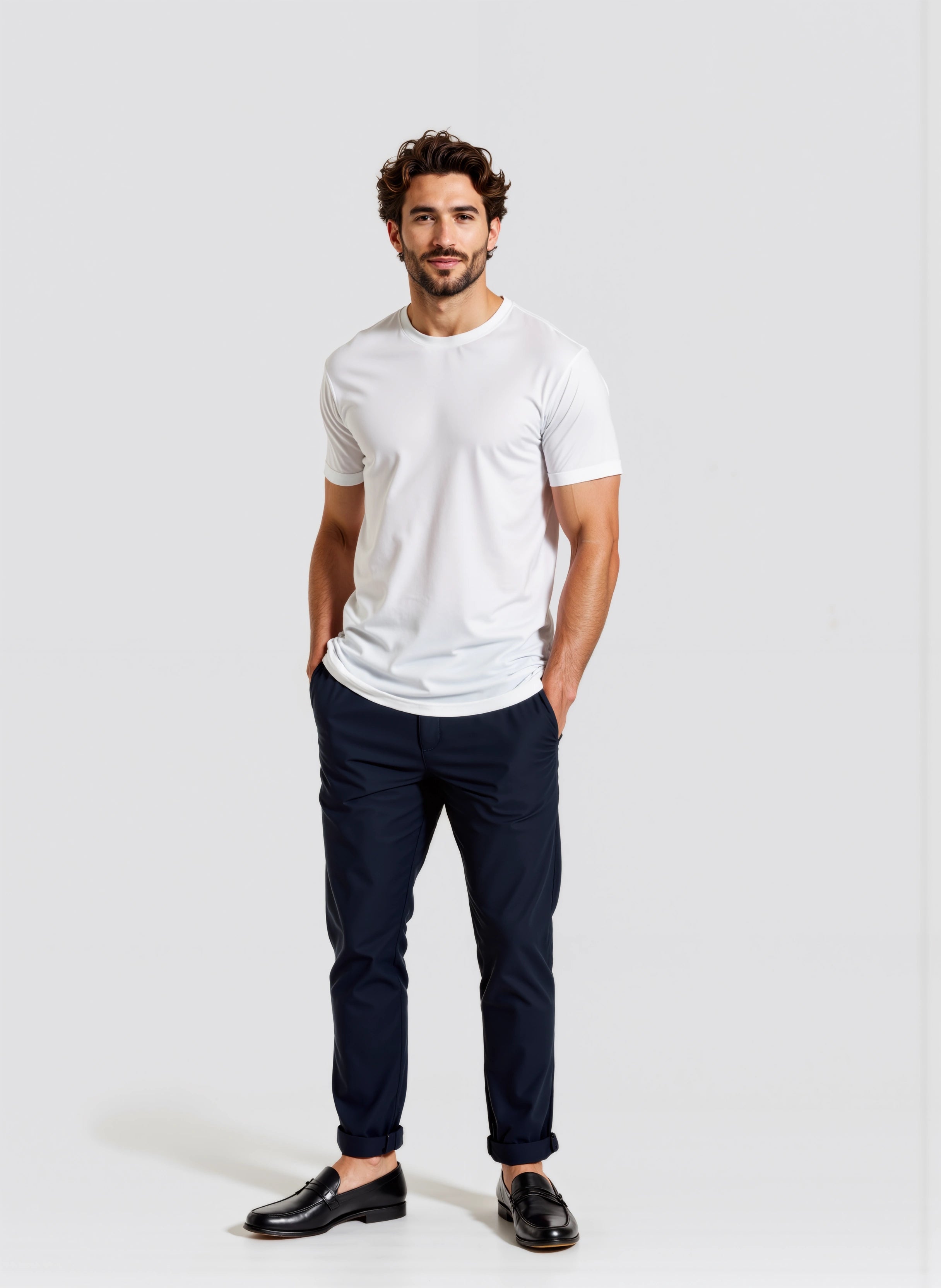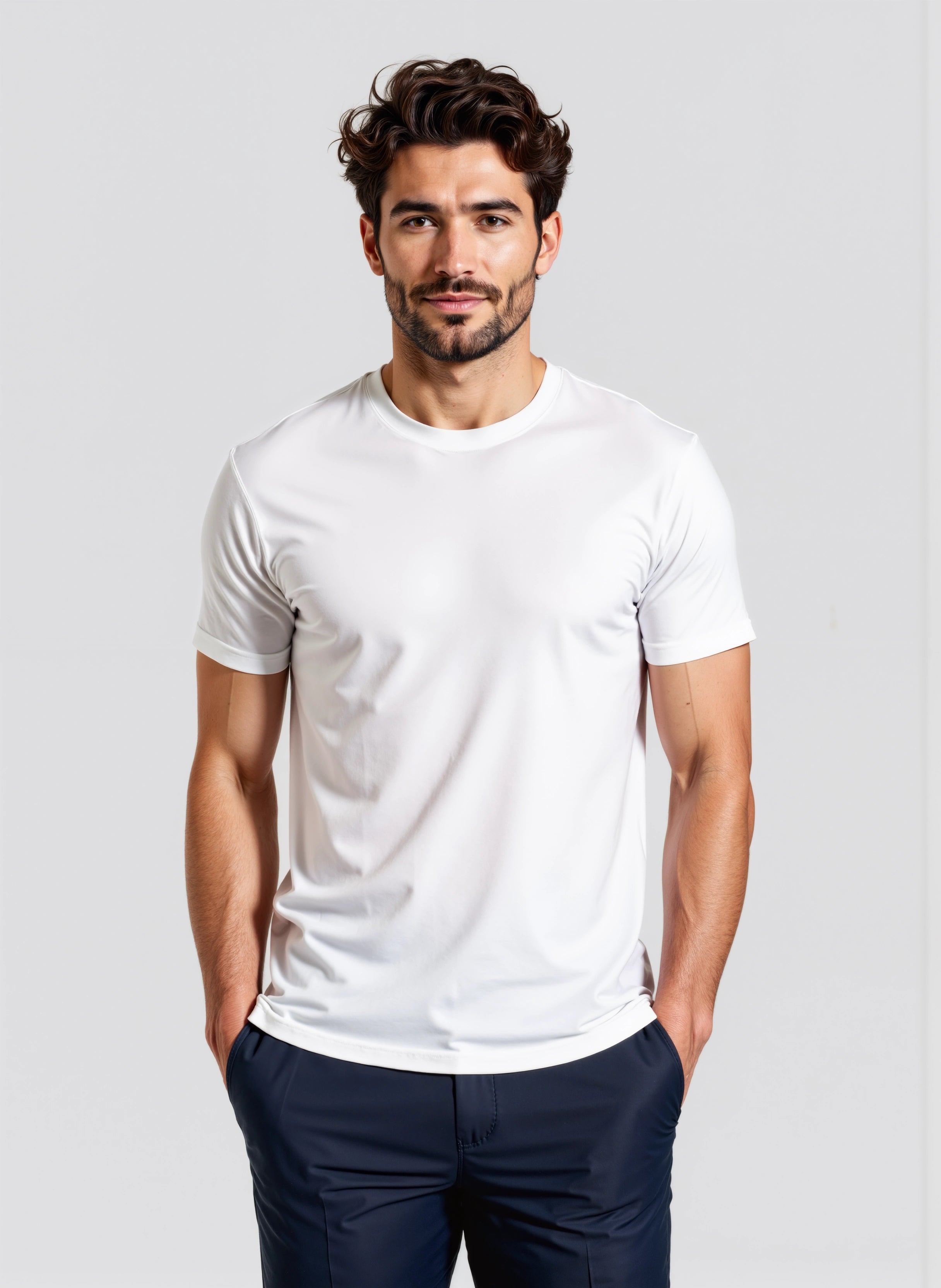 The Premium collection, on the other hand, represents the brand's excellence: each piece is made from 180 gsm extra-combed cotton , which is fuller, softer, and more durable. The finishes are meticulously crafted to elegantly accentuate the body. Ideal for more formal occasions or to wear under a jacket.