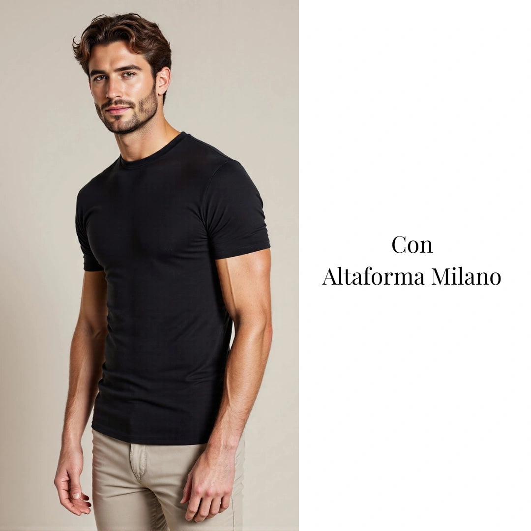 The Muscle Fit T-Shirts by Altaforma Milano are designed for those who want to enhance their physique with style and comfort. Made of 100% high quality cotton , they offer a tight fit that enhances the chest, shoulders and arms , giving a defined and elegant look. .