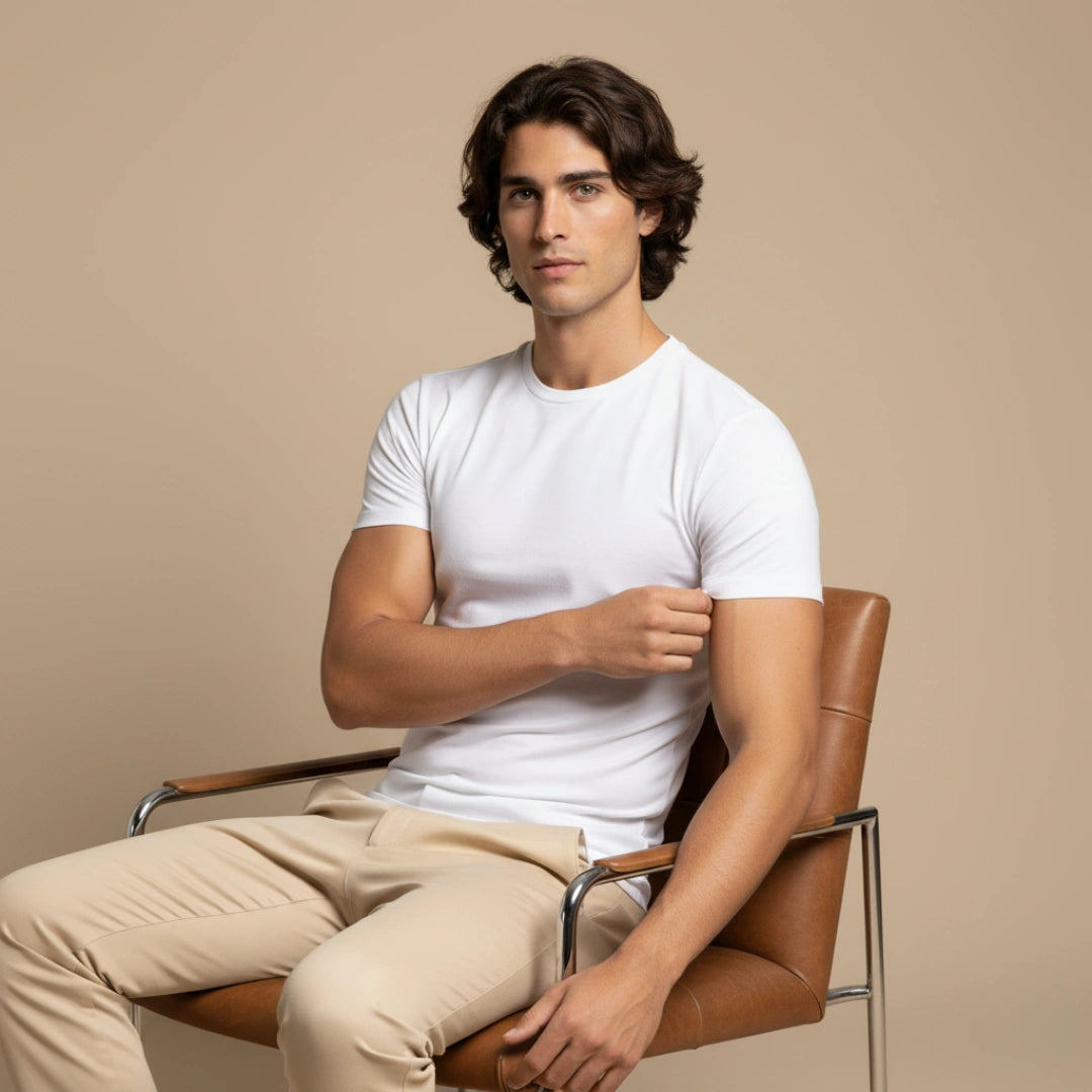 The Premium collection, on the other hand, represents the brand's excellence: each piece is made from 180 gsm extra-combed cotton , which is fuller, softer, and more durable. The finishes are meticulously crafted to elegantly accentuate the body. Ideal for more formal occasions or to wear under a jacket.