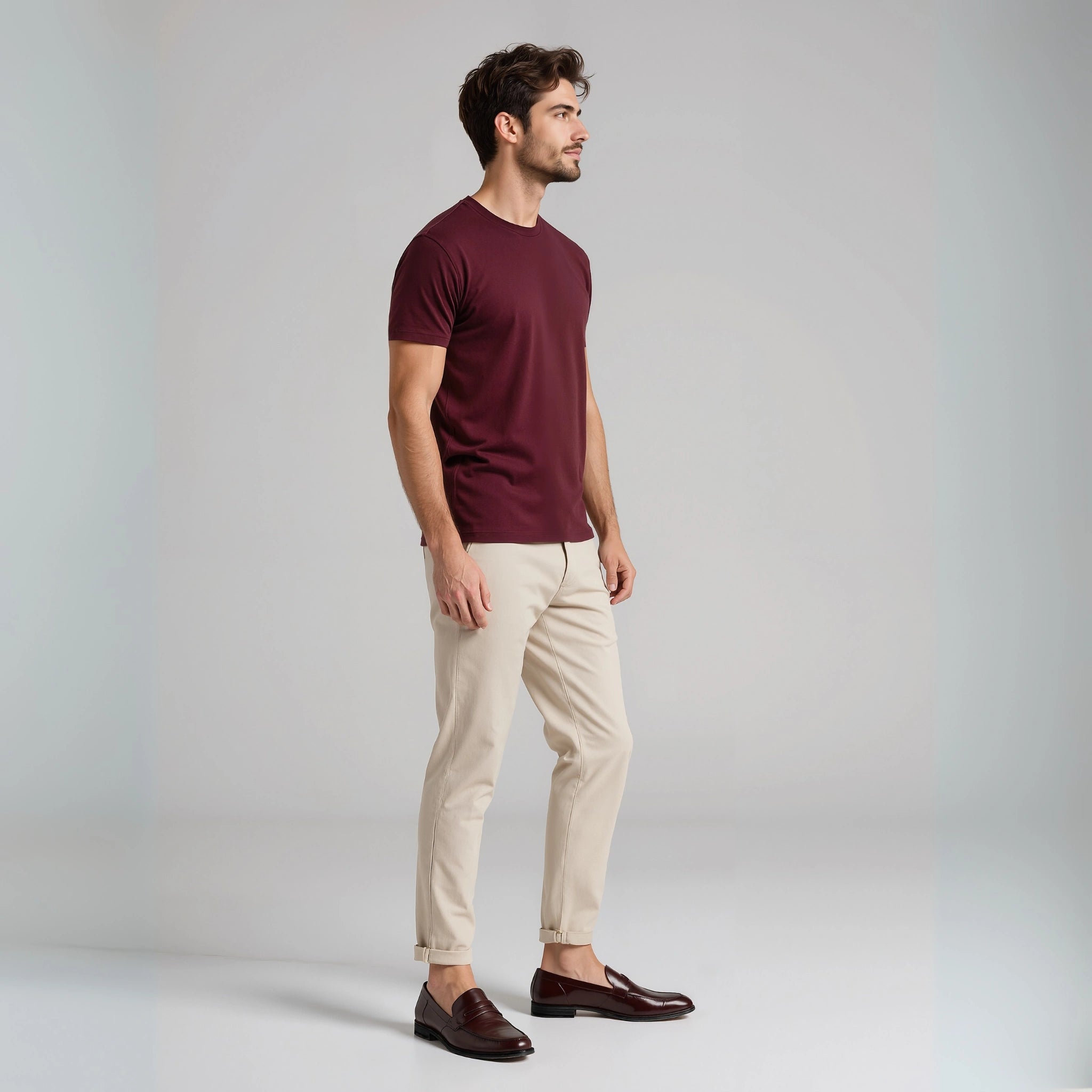 Eleva il tuo stile con la T-shirt Siena Muscle Fit, un perfetto equilibrio tra eleganza e artigianalità italiana. Realizzata interamente in Italia, questa maglietta nel sofisticato colore Bordeaux è pensata per valorizzare la tua figura grazie alla sua vestibilità aderente e sagomata.
